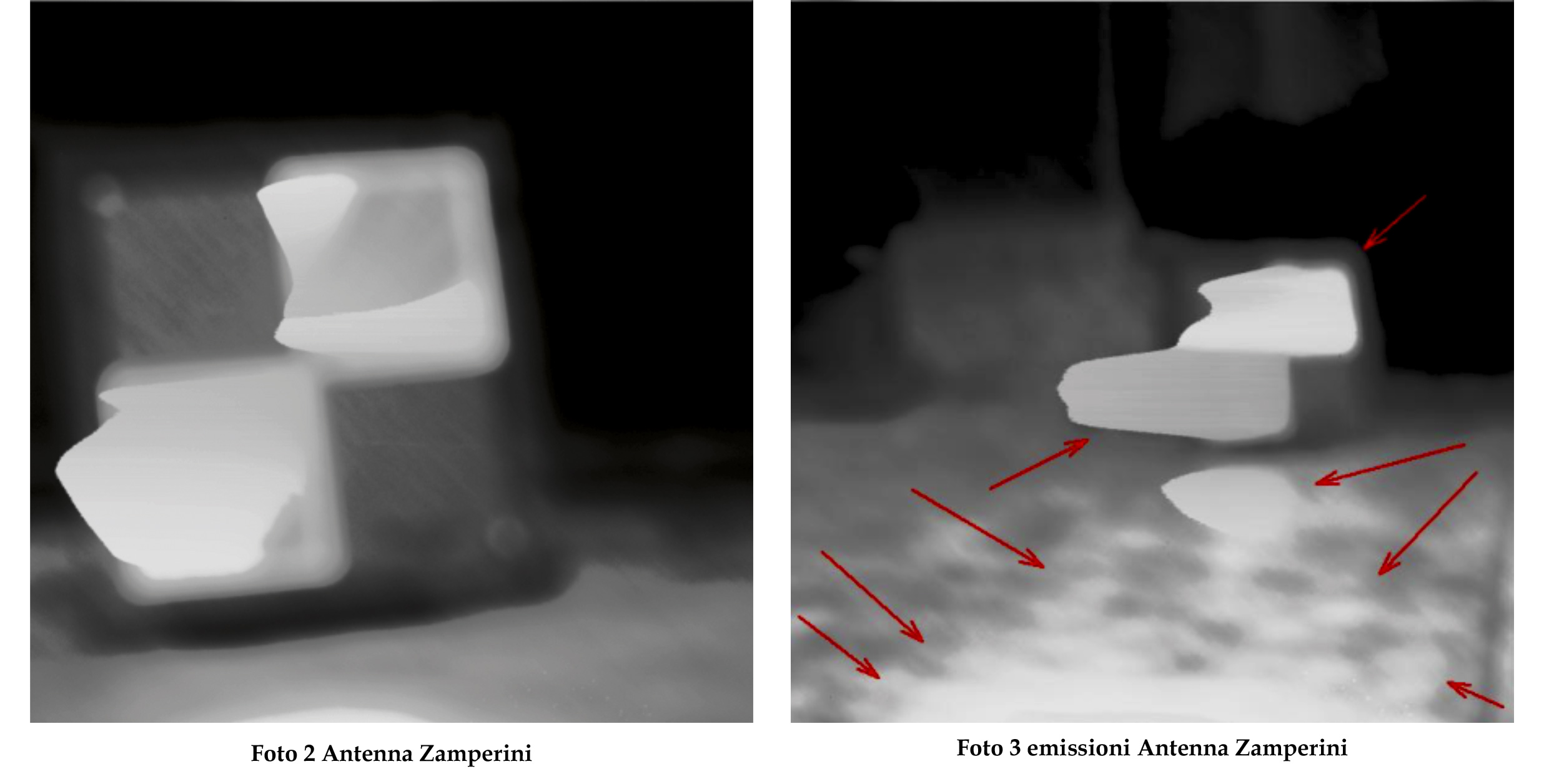 Una possibile interpretazione potrebbe essere questa: l’alone grigio che si vede in basso a sinistra dell’Antenna Zamperini indica energia sottile congesta che viene assorbita, mentre l’alone chiaro in alto a destra indica energia pura in emissione.
